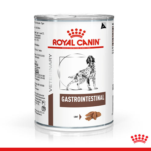 Royal Canin Gastrointestinal կերը նախատեսված է ստամոքսի խնդիրներ ունեցող չափահաս տարիքի շների համար։ Մարսողական աջակցություն-Բարձր մարսելի բանաձև՝ բջջանյութի հավասարակշռված պարունակության շնորհիվ,ներառյալ նախաբիոտիկները՝ խթանելու առողջ մարսողությունը և տարանցումը:Բարձր համեղություն՝ կենդանիներին ախորժակի կորստով բավարարելու համար: Բարձր էներգիայի պարունակություն՝ սննդի ծավալը և աղիների ծանրաբեռնվածությունը նվազեցնելու համար: Հավելումներ (կգ-ի համար) Սննդային հավելումներ՝ վիտամին D3՝ 260 IU, երկաթ (3b103)՝ 6 մգ, յոդ (3b202): 0.3 մգ, պղինձ (3b405, 3b406): 2.8 մգ, մանգան (3b502, 3b503, 3b504): 2մգ, ցինկ (3b603, 3b605, 3b606): 20 մգ - տեխնոլոգիական հավելումներ. Կլինոպթիլոլիտ նստվածքային ծագումը՝ 2,5 գ։Անալիտիկ բաղադրիչներ՝ Սպիտակուցներ՝ 8,9% - Ճարպի պարունակություն՝ 5,9% - Հում մոխիր՝ 2,4% - Հումմանրաթել՝ 1,2% - խոնավություն՝ 74,0% - նատրիում, 0,27% - կալիում, 0,17% - ճարպաթթուներ.օմեգա-3՝ 0,38%, օմեգա-6՝ 1,8% - նյութափոխանակվող էներգիա՝ 1111,0 կկալ/կգ: Բաղադրությունը՝ միս և կենդանական ենթամթերք, ձուկ և ձկան ենթամթերք, հացահատիկներ, ենթամթերք բուսական ծագում ունեցող, յուղեր և ճարպեր, հանքանյութեր, խմորիչներ։ Բարձր մարսելի բաղադրիչներ. խոզի և թռչնի ենթամթերք, սաղմոն, բրինձ.