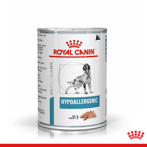 Royal Canin Hypoallergenic կերը նախատեսված է հատուկ ալերգիկ շների համար ,որոնց հակացուցված է ցանկացած այլ սնունդ։ Նախատեսված է հասուն տարիքի շան համար։ Հիդրոլիզացված սպիտակուցներ - ցածր մոլեկուլային քաշի հիդրոլիզացված սպիտակուցներ՝ սննդի ռիսկը սահմանափակելու համար Մաշկի պատնեշ -Ձևակերպված է մաշկի բնական պաշտպանիչ պատնեշին աջակցելու համար՝ օպտիմալ առողջության համար: NIA հավելումներ ։ Սննդային հավելումներ՝ վիտամին A՝ 3000 IU, վիտամին D3՝ 320 IU, E1 (Երկաթ).11 մգ, E2 (յոդ)՝ 1 մգ, E4 (պղինձ)՝ 3,8 մգ, E5 (մանգան)՝ 15 մգ, E6 (ցինկ)՝ 36 մգ - Տեխնոլոգիական հավելումներ՝ նստվածքային ծագման կլինոպթիլոլիտ՝ 2,5 գ։ Բաղադրիչներ՝ սպիտակուցներ՝ 6,4% - Հում ճարպ՝ 3,5% - Հում մոխիր՝ 2,0% - Հում մանրաթել՝ 1,5% -Խոնավություն՝ 74,0% - EPA և DHA՝ 0,12% - Հիմնական ճարպաթթու (Լինոլաթթու)՝ 1,4%: Բաղադրությունը՝ բուսական ծագման ենթամթերք, բուսական սպիտակուցների էքստրակտներ, յուղեր և ճարպեր, միս և կենդանական ենթամթերք, հանքային նյութեր. Ընտրված սպիտակուցային աղբյուրներ.հիդրոլիզացված սոյայի սպիտակուցի խտանյութ, հիդրոլիզացված թռչնաբուծական ենթամթերք: Ընտրված աղբյուրը ածխաջրեր՝ սիսեռի օսլա։